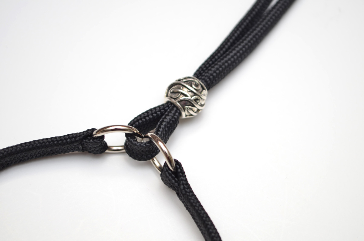 Hand made from soft tubular webbing, in a variety of collar sizes, the integrated slider makes this set easily adjustable so you can: close it to act as a collar and lead, slacken it slightly for a half check action